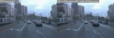 演示视频 2 基线方法S3Gaussian与DriveDreamer4D的生成效果比较