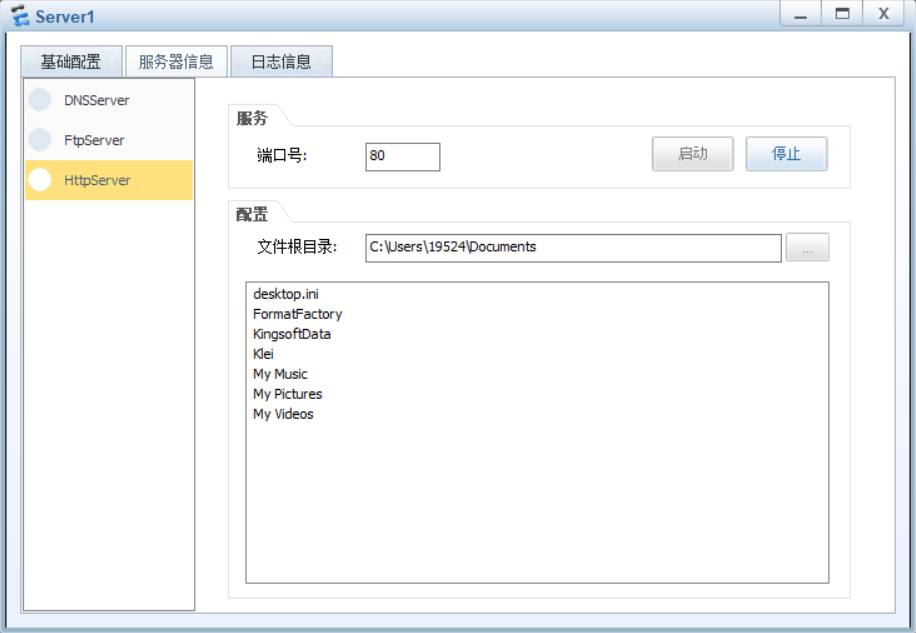 在本主机选择一个文件夹作为服务器的文件根目录,并开启HTTP服务。