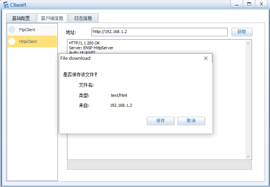 使用Client的HTTP功能获取服务器IP的资源,获取成功即为实验成功。