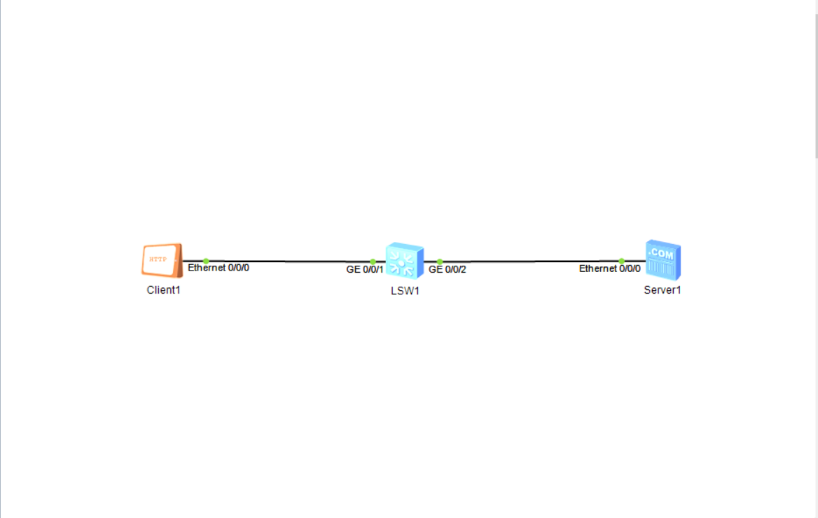 创建如上图所示的网络拓扑结构。其中使用到了1台Client、1台交换机、1台服务器(作为HTTP服务器)。