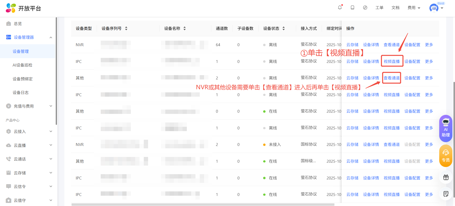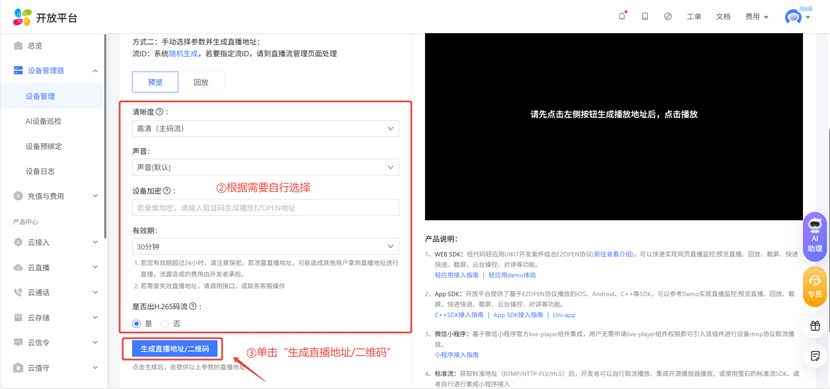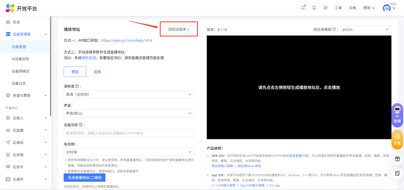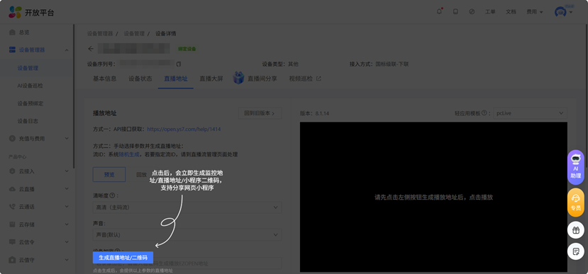 萤石开放平台控制台视频直播(原播放地址)操作指南