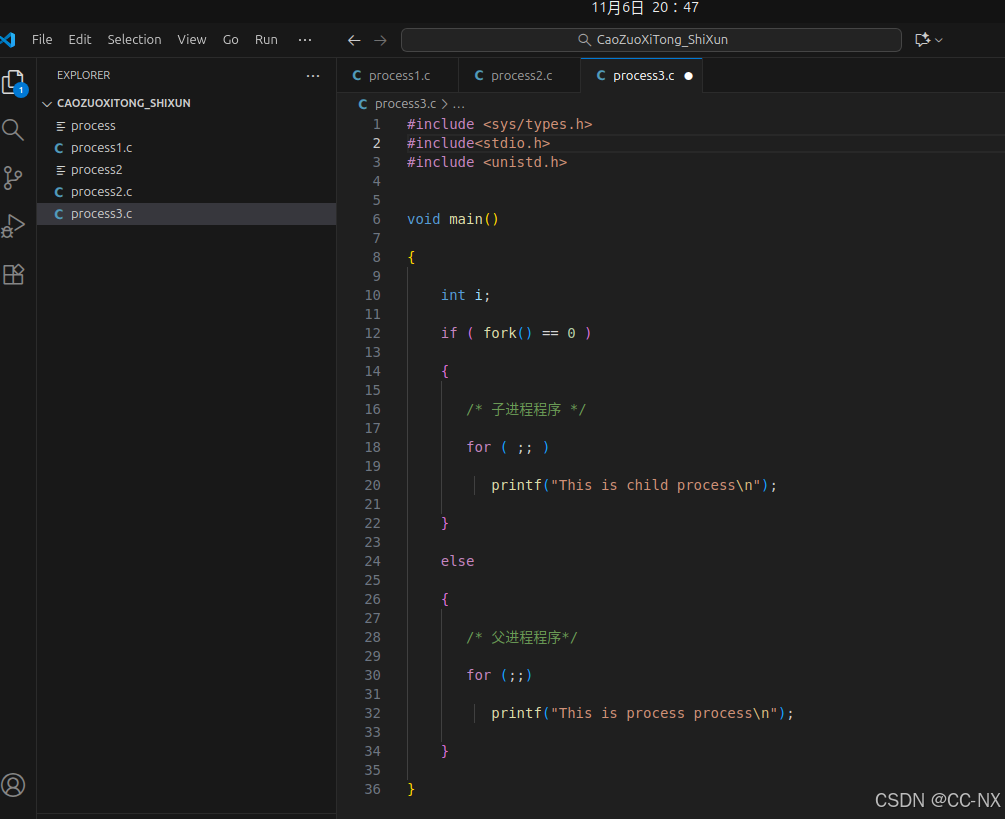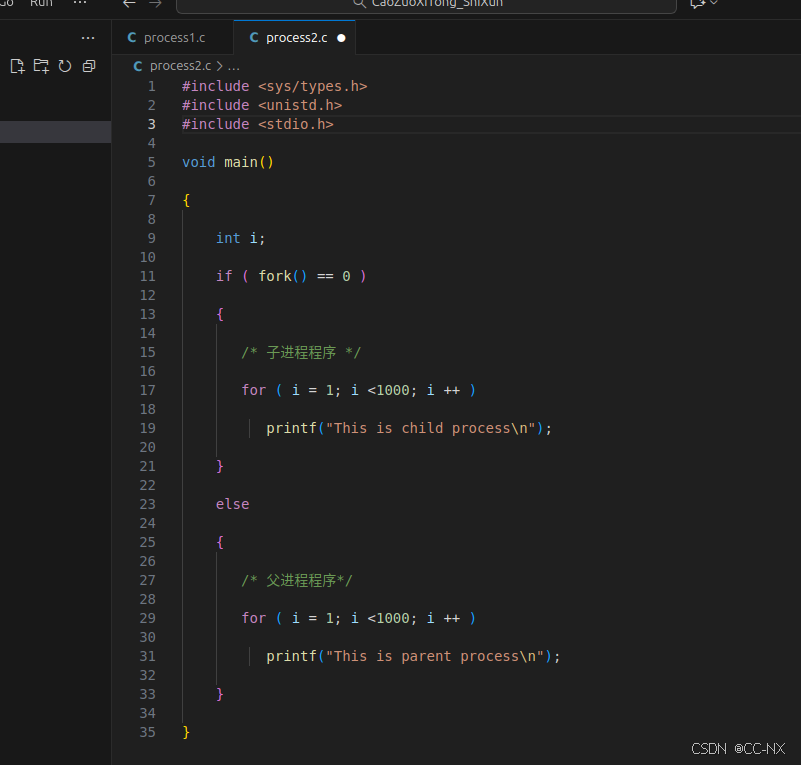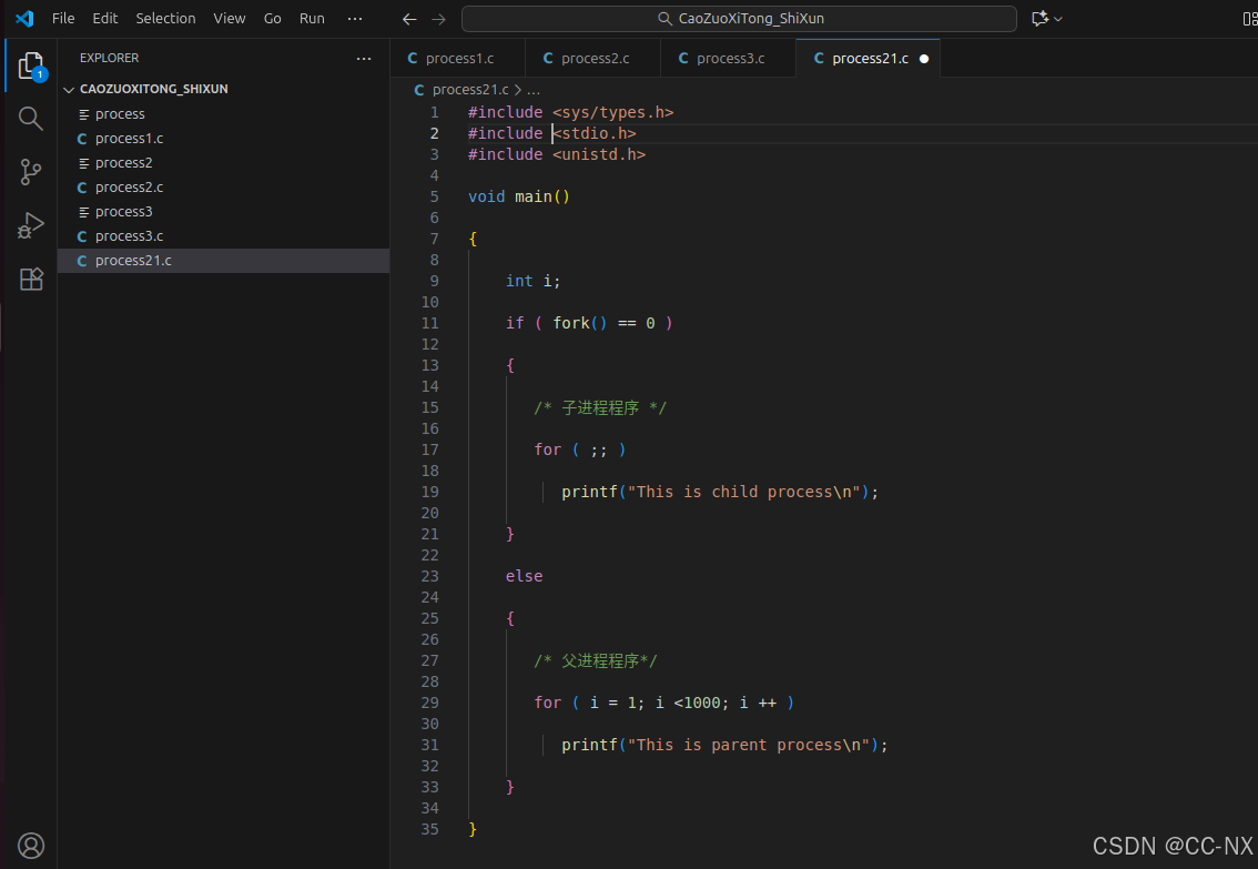 文件名命名为process1.c