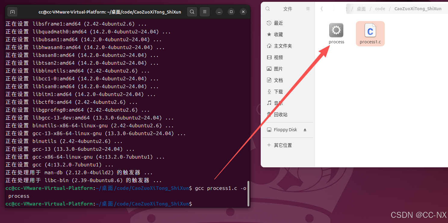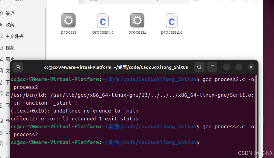 使用gcc process1.c -o process编译该程序