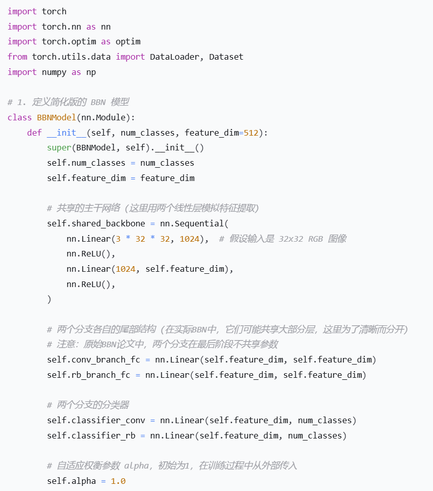 长尾识别是视觉识别中的一个重要研究方向,BBN(Bilateral-Branch Network)模型就是为了解决数据长尾分布问题而提出的一个有效方法。下面我们来详细了解它的原理、实现方法,并会提供一个简单的代码示例。