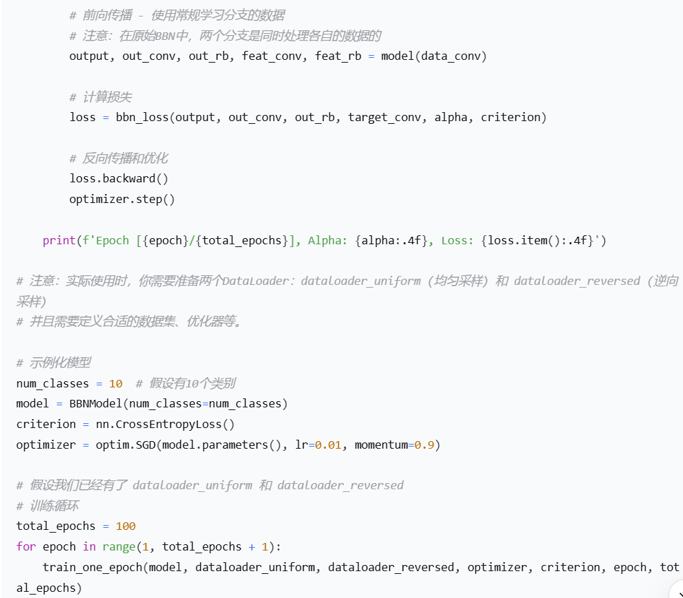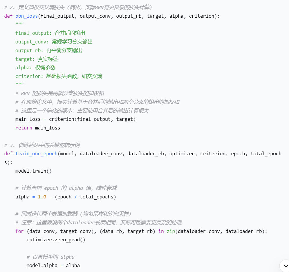 BBN 的核心思想是通过双边分支网络结构和累积学习策略,来平衡表征学习和分类器学习,从而在改善尾类性能的同时,不损害模型的整体表征能力。