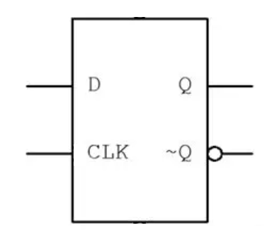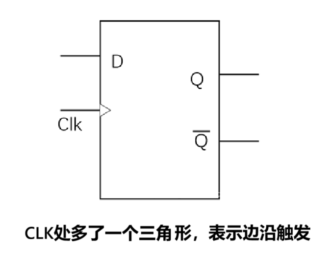 我们仅仅需要将输入端用一个非门连接,就能保证输入的S和R永远是相反的值,从根本上避免了约束条件。从下图可以发现所谓的D触发器,特别简单。与SR触发器仅仅多了一个非门。