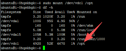 mount /dev/vdcl /opt #将磁盘挂载到/opt目录下
