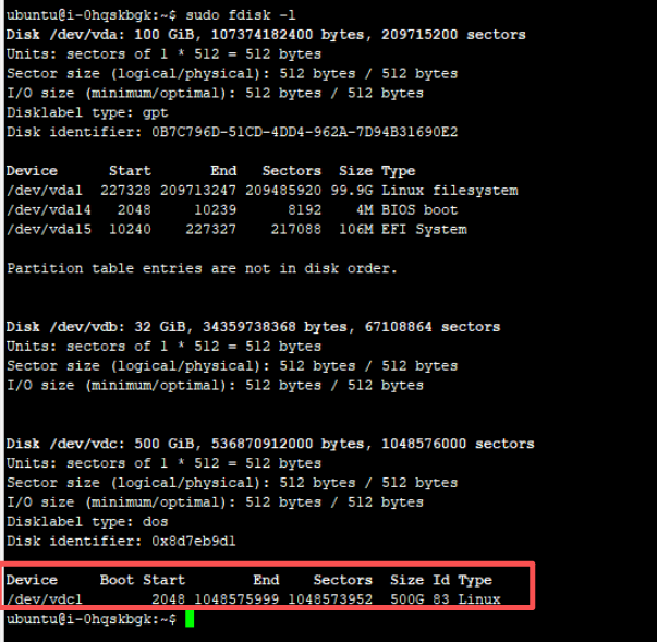 mkfs -t ext4 /dev/vdcl #格式化创建的磁盘为ext4