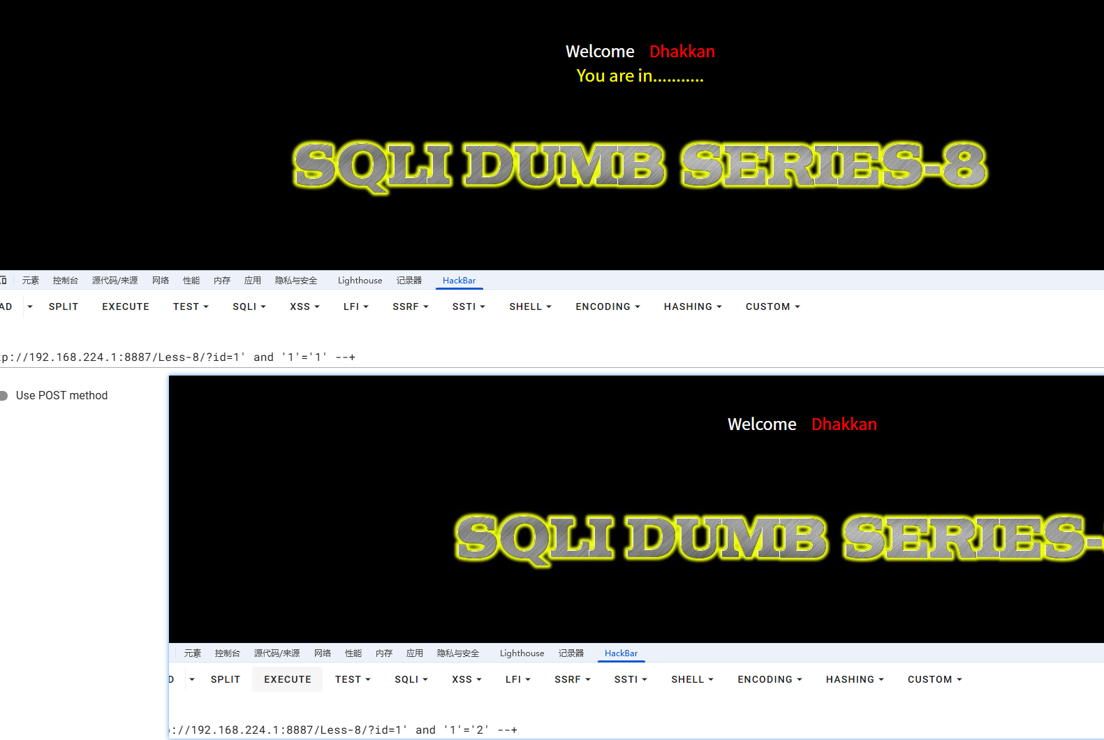 Less-8 是学习纯布尔盲注的经典题目,和 Less-5 的区别就是不显示错误信息,只能通过页面有无内容来判断!🎯