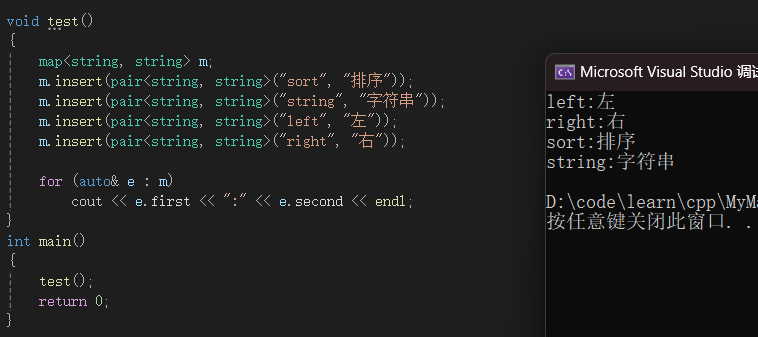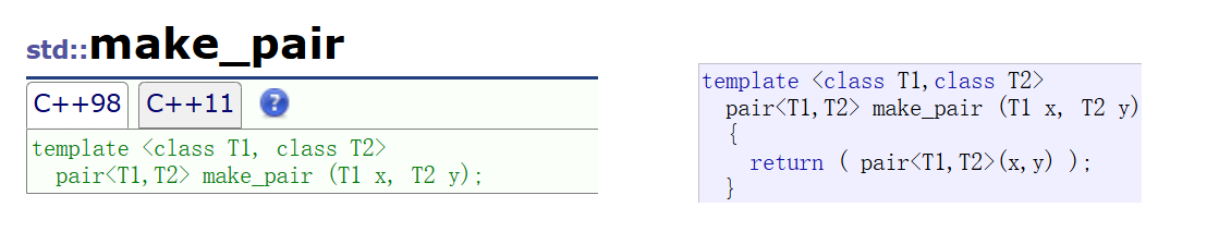 每个插入的键值对都是pair的匿名构造,为了提高效率,c++中提供了一个make_pair的接口