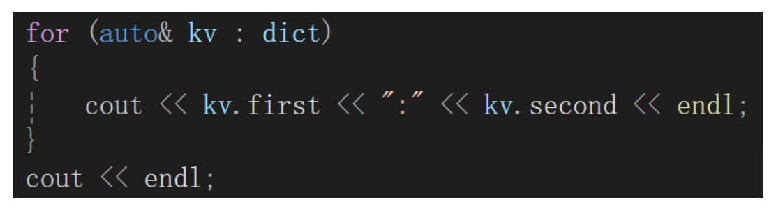 - 当因有重复键而插入失败时,pair 的第一个元素是指向包含重复键的元素的迭代器,第二个元素是 false。
