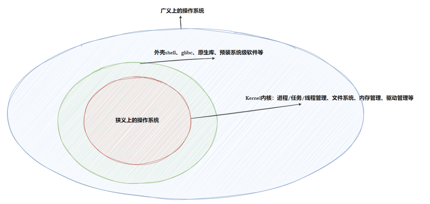 侠义上的操作系统,内核主要的四大功能:内存管理、文件管理、驱动管理、进程管理