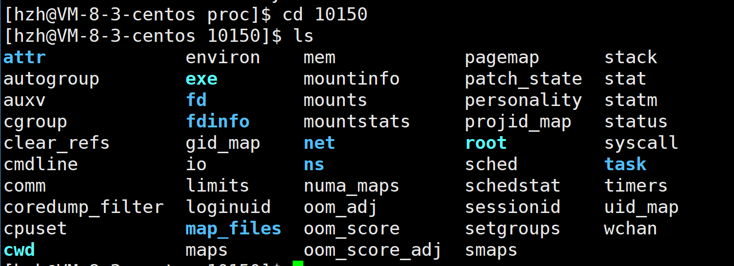 Linux下进程中的”身份标识“(PID)都会统一保存在 /proc 目录下,左侧的就是各进程的PID。如果想查看某进程的信息就需要打开相对于的文件。