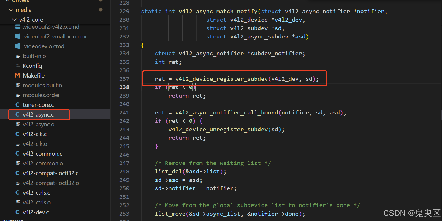 不管是v4l2 subdev 的同步创建和异步创建,最终都是调用了v4l2_device_register_subdev这个函数,其中我们重点关注异步创建,因为视频流通路上的前后拓扑节点模块驱动 probe 的先后顺序不可控制,所以异步的注册创建显得尤为普遍。