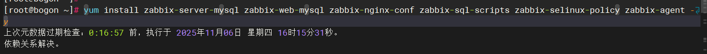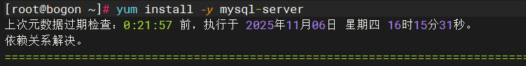 yum install -y mysql-server **安装 MySQL 服务器**:为 Zabbix 提供数据存储服务