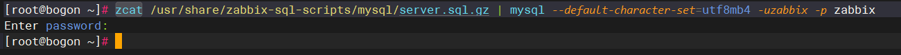 **导入初始数据**:通过 zcat 和管道命令导入 Zabbix 的基础数据表结构和初始配置数据
