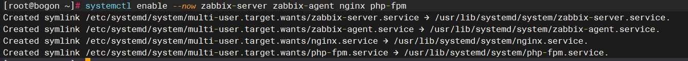 systemctl enable --now zabbix-server zabbix-agent nginx php-fpm 作用: 服务激活:启动所有 Zabbix 相关的系统服务 自动启动:设置服务在系统启动时自动运行 服务集群:同时启动多个相互依赖的服务 系统集成:将 Zabbix 服务纳入系统管理框架