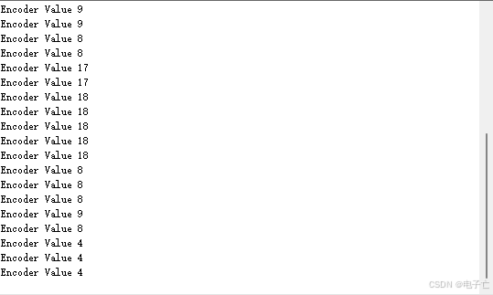 当编码器顺时针旋转时,计数器的值加,逆时针旋转时,计数器的值减。
