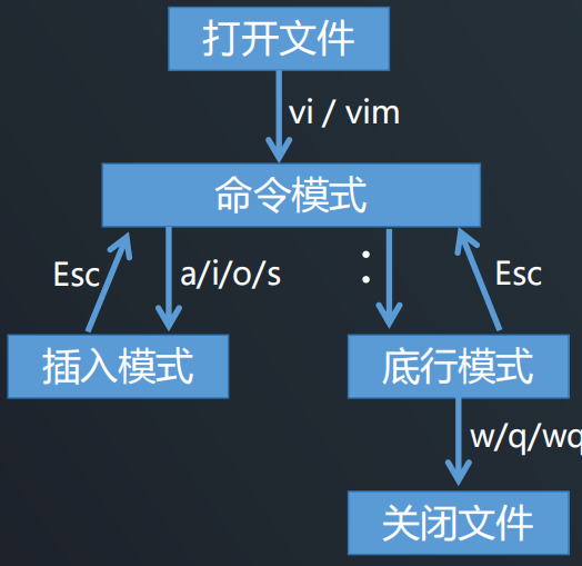 - 底行模式可以输入命令,进行文件的保存、查找、替换等
