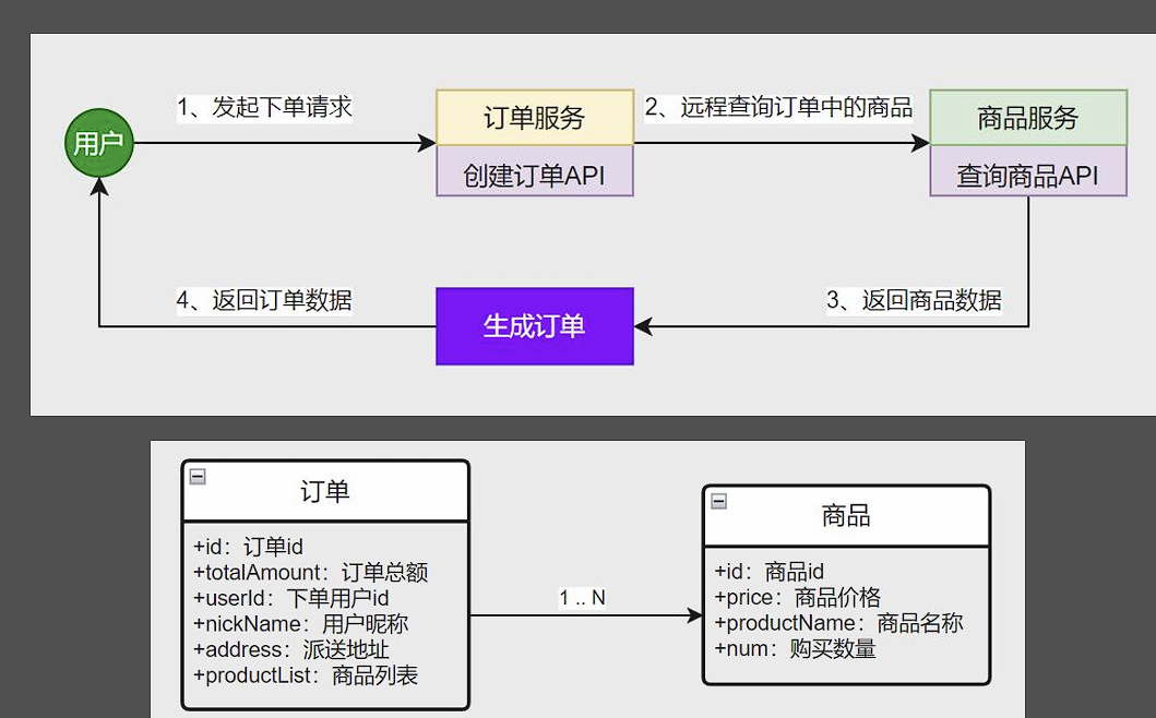 public class OrderServiceImpl implements OrderService {@Overridepublic Order createOrder(Long userId, Long productId) {Order order = new Order();order.setId(1L);//TODO 总金额order.setTotalAmount(new BigDecimal("0"));order.setUserId(userId);order.setNickName("张三");order.setAddress("火星");//TODO 远程查询商品列表order.setProductList(null);return order;}