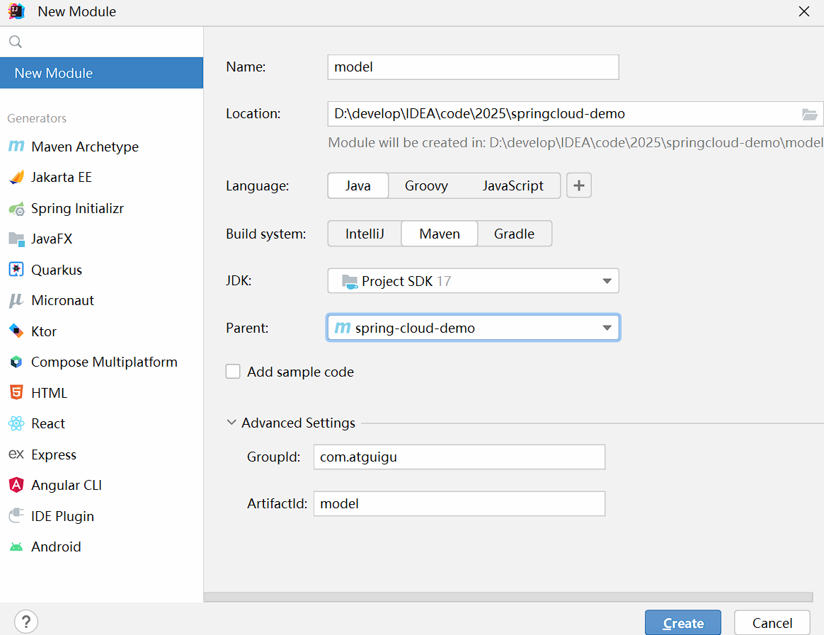 1.创建实体类模块