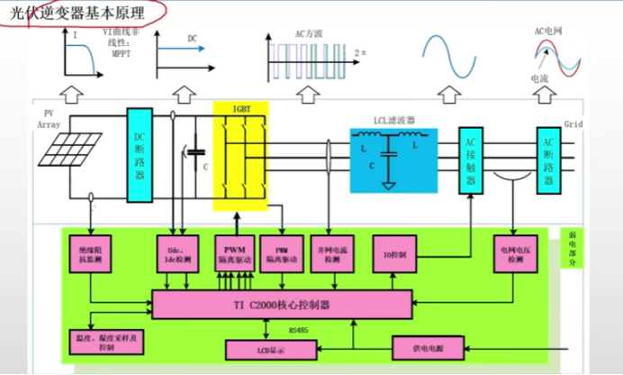 光伏逆变器的作用:将太阳能电池板产生的直流电转换为可供电网或负载使用交流电。