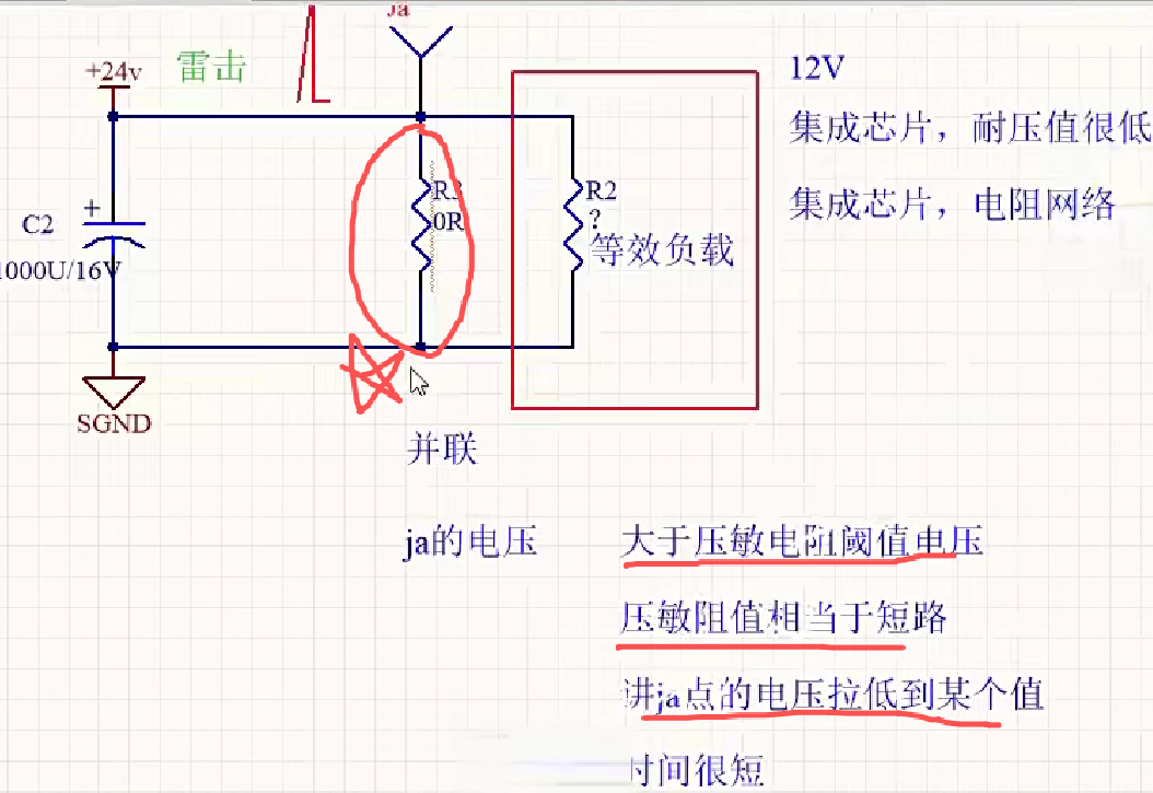 并联的阻值将这个节点的电压拉低到某个电压,这个电压必须小于后面电路中的最小瞬态电压。