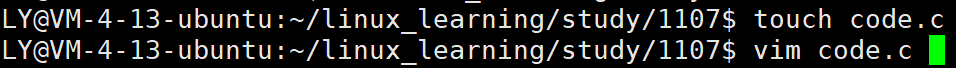 首先我们创建一个.c文件,接着利用vim打开文件,进入默认是命令模式