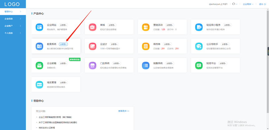 首先,进入乔拓云网,注册登录账号后进入后台,点击【教育系统】,进入后台管理页面。