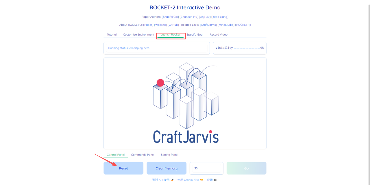 3.之后进入「Launch Rocket」点击「Reset」加载环境。