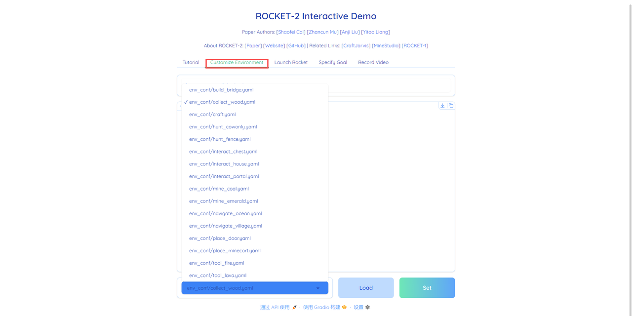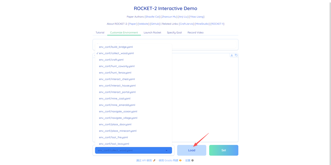 2.然后进入「Customize Environment」选择你要加载的环境。选择好之后点击「Load」加载。