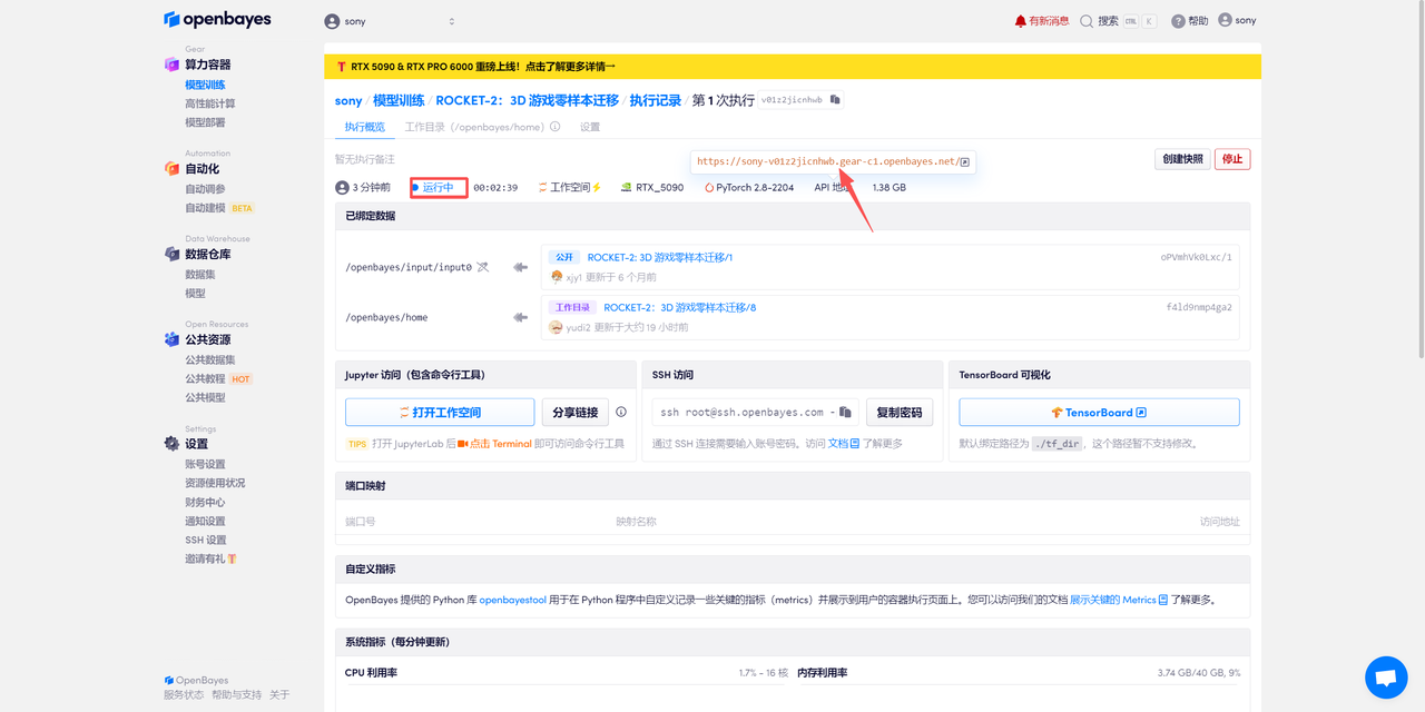 使用云平台:OpenBayes