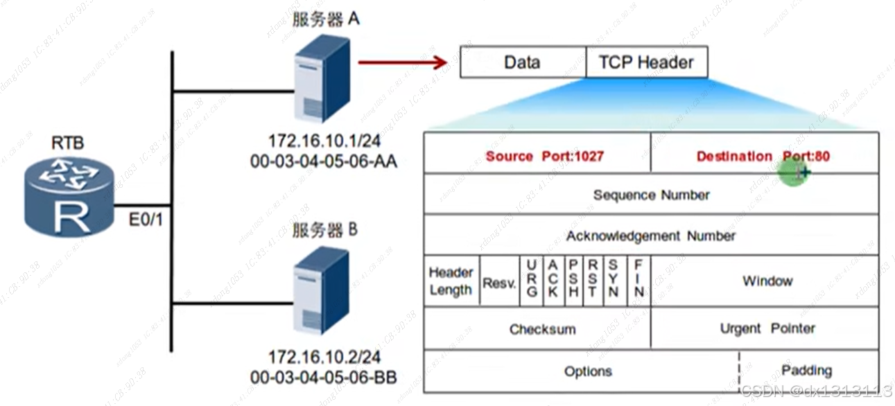 - 服务器A剥掉数据包的IP地址头部后会送往上层协议TCP继续进行处理
