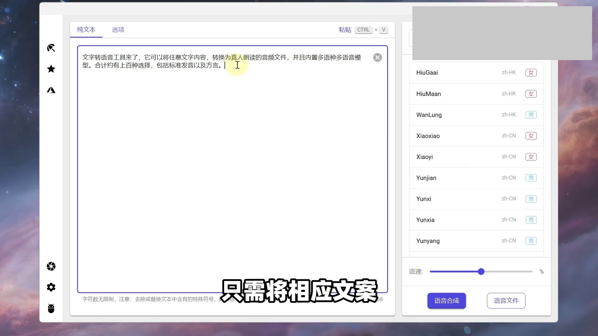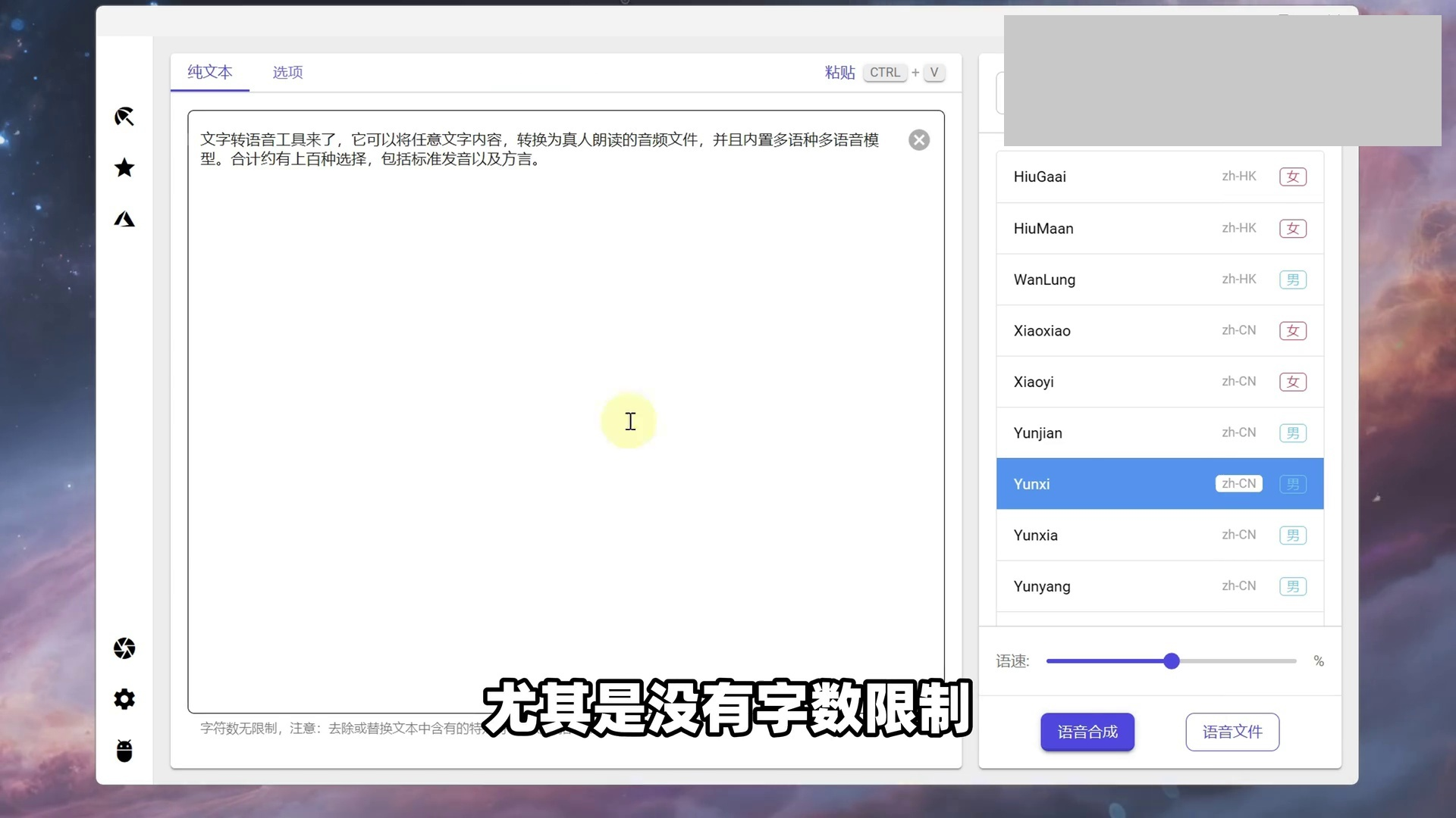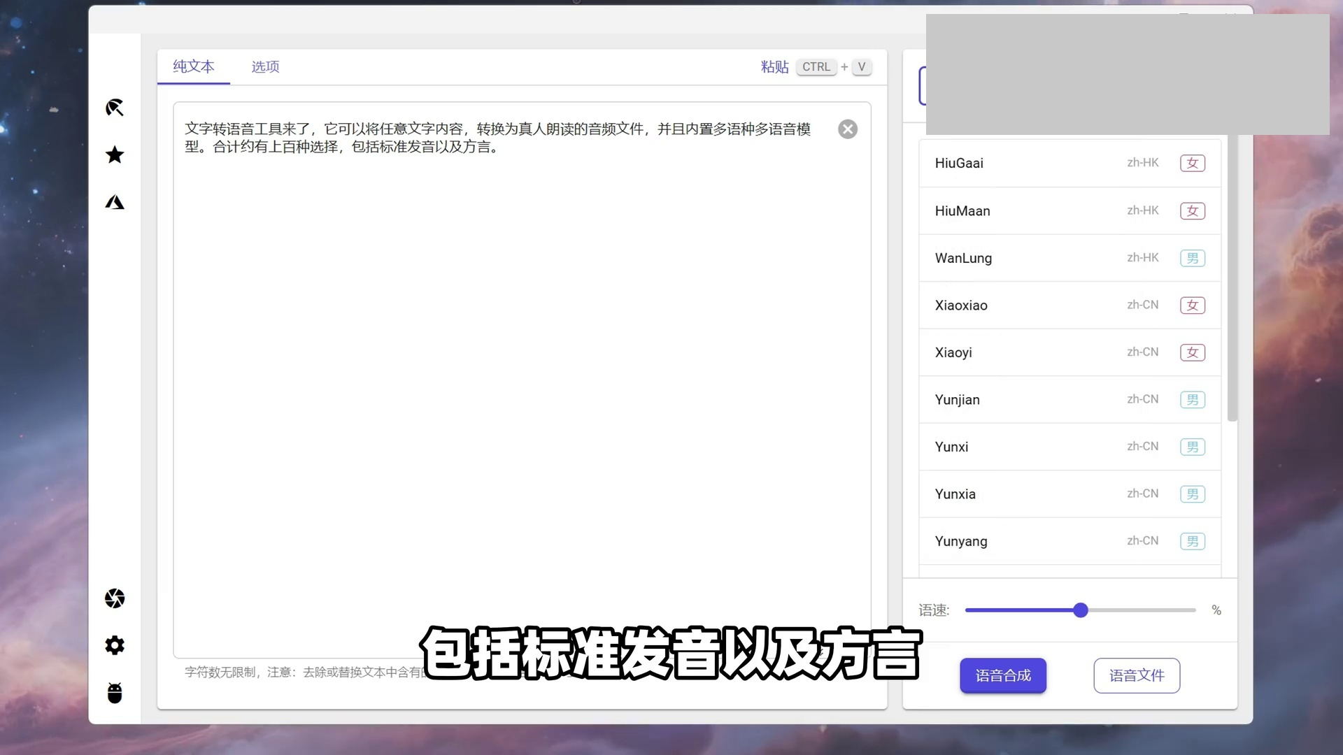Win电脑文字转语音,不限使用次数和字数!可将文字文本内容转换为朗读配音的音频文件!多功能语音合成,内置多语种、多角色语音配音模型,支持普通话标准发音和方言!