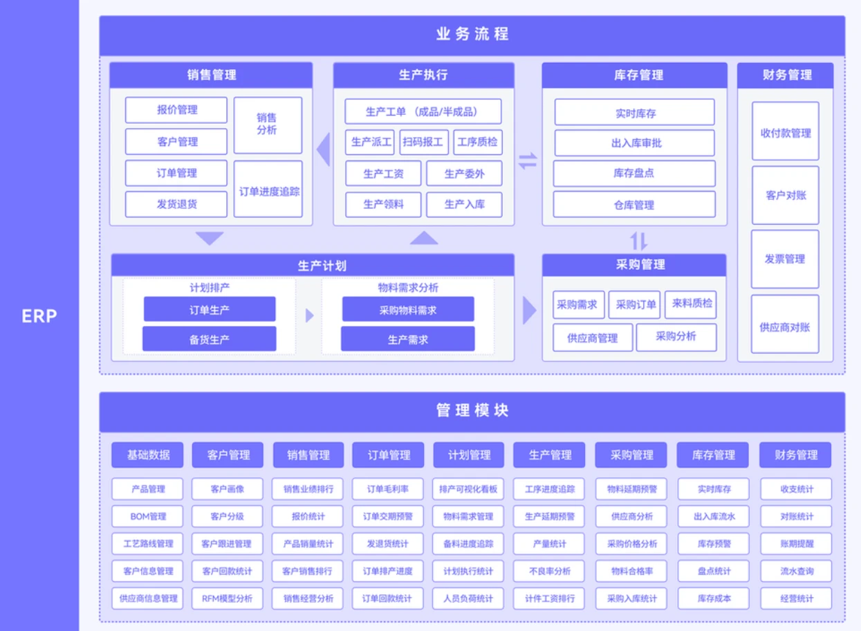 ERP是企业资源计划(Enterprise Resource Planning)的缩写,作为覆盖企业全业务的集成化平台,其与仓储管理相关的核心功能聚焦于全局资源的统筹调度: