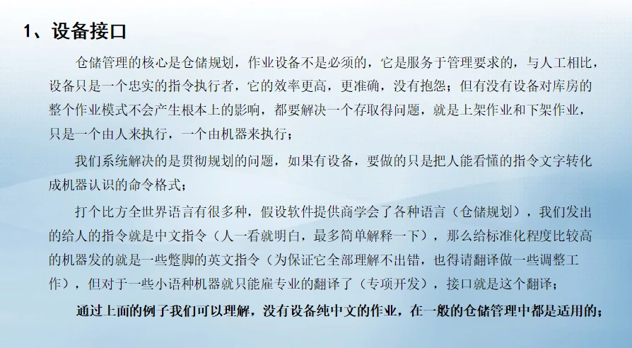 关键节点1:硬件对接。完成PDA、电子标签、堆垛机等设备与WMS的接口开发(参考下图),测试设备指令响应(PDA接收拣货任务、扫描商品条码确认);