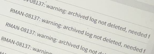 RMAN-08137: WARNING: archived log not deleted as it is still needed archived log file