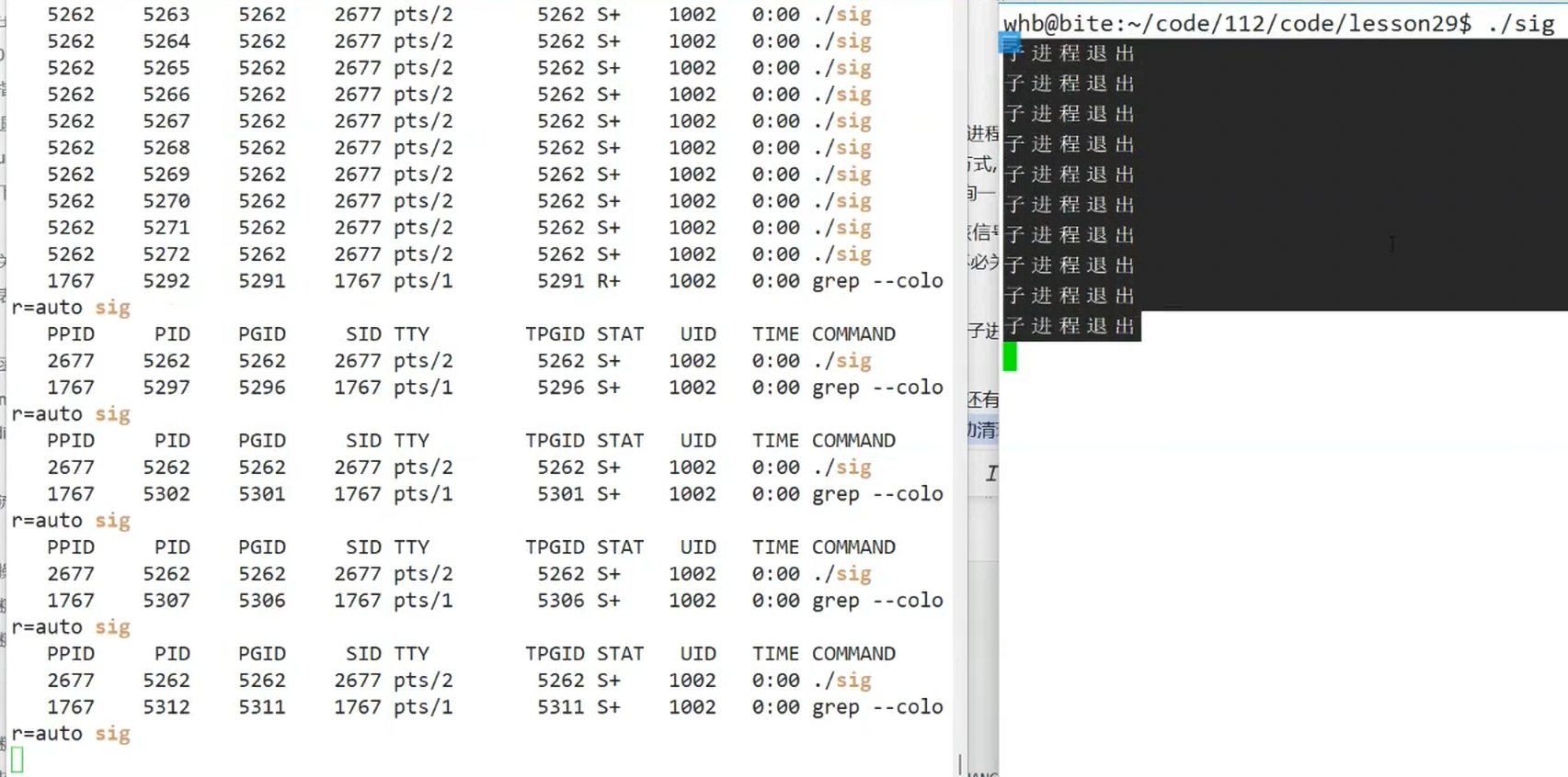 {signal(SIGCHLD,handler);for(int i = 0;i < 10; i++){if(fork() == 0){sleep(5);std::cout << "子进程退出" << std::endl;exit(0);}}while(true){sleep(1);}return 0;