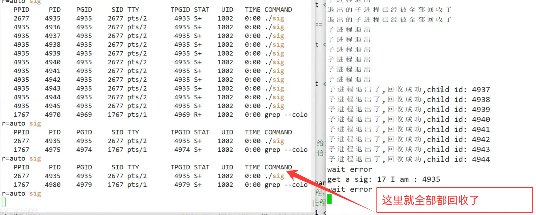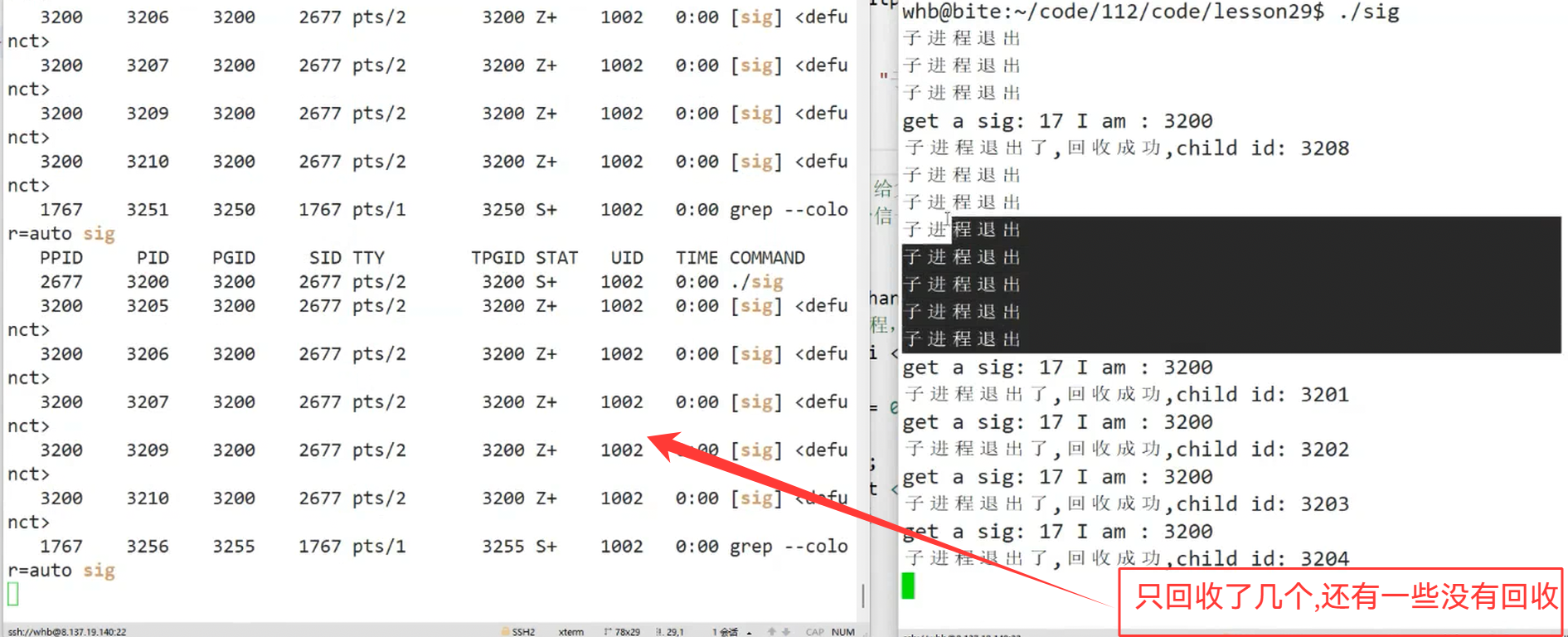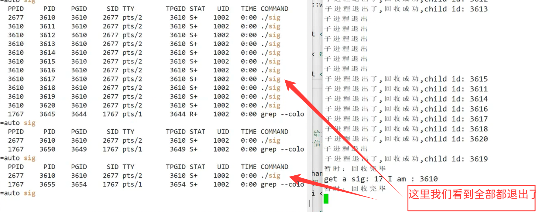 {//linux下 如果只想不产生僵尸,我们直接进行SIG_IGN就行了signal(SIGCHLD,SIG_IGN);for(int i = 0;i < 10; i++){if(fork() == 0){sleep(5);std::cout << "子进程退出" << std::endl;exit(0);}}while(true){sleep(1);}return 0;