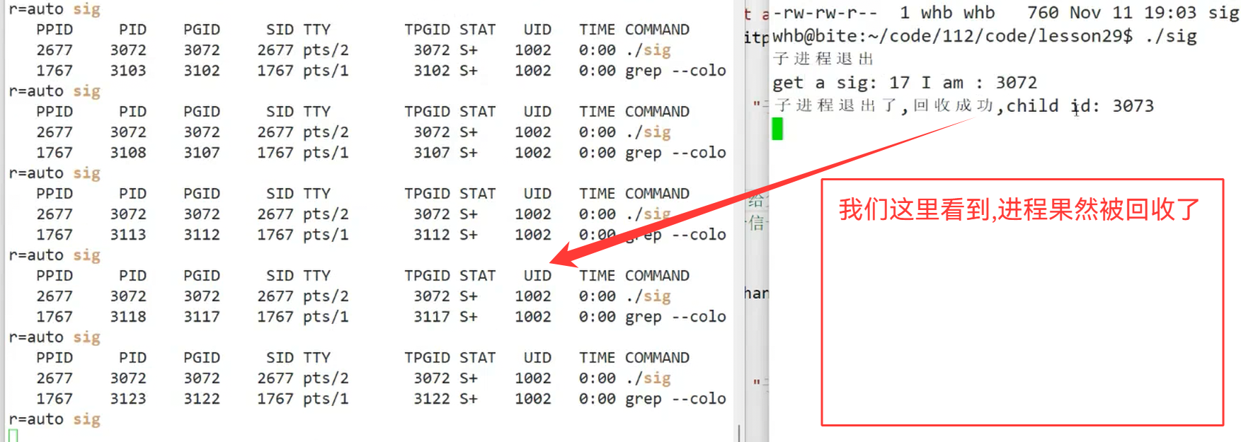 所以,现在我们对应的子进程退出时,确实会给父进程发送信号,我们就能基于信号,来进行回收子进程