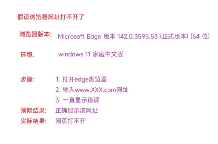 基本要素:问题出现的版本、问题出现的环境、问题出现的步骤、预期结果、实际结果