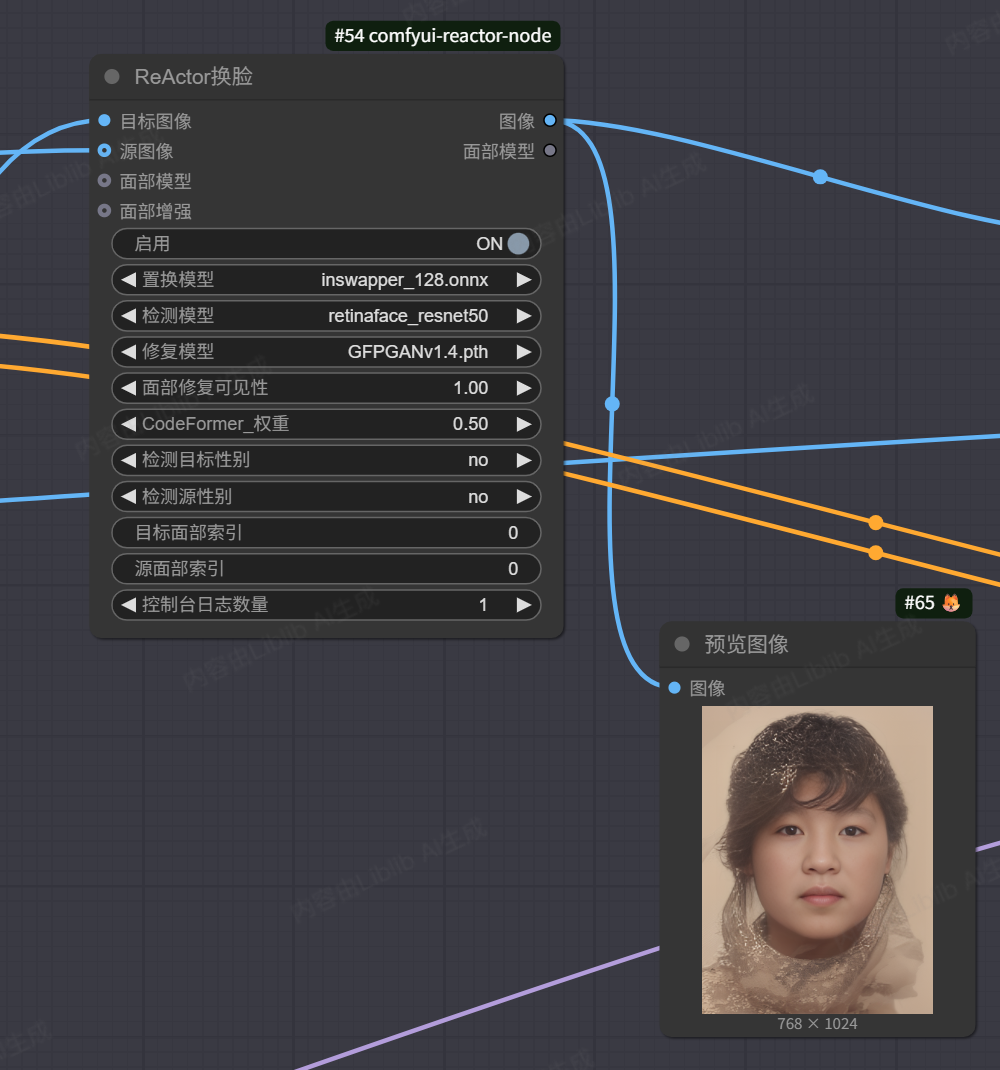 应该说现在的comfyUI组件已经非常人性化了。两个基本组件,如果你要使用简单的方式,可以使用 reactor 变换下。他的参数相对很少。