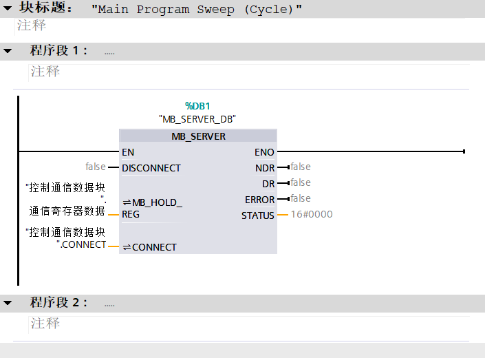 4、在MAIN(OB1)中添加MB_SERVER通信块