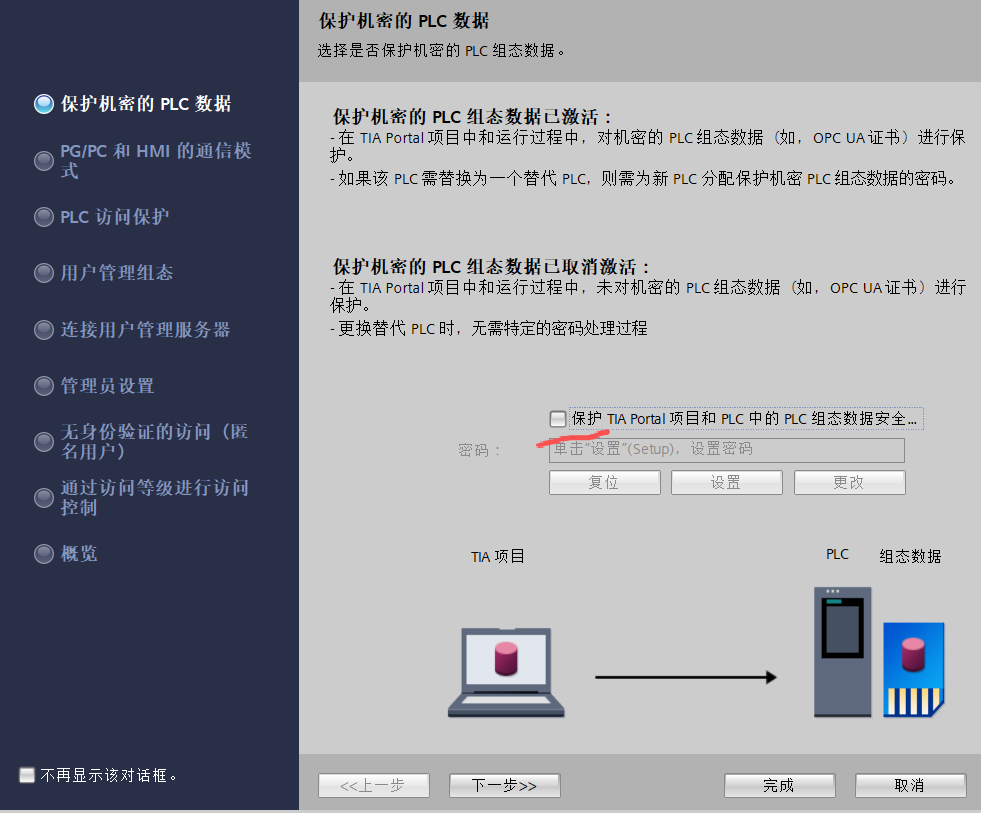 1、不设置密码:因为博图用的是V20,建立项目默认设置密码,选择不设置密码。