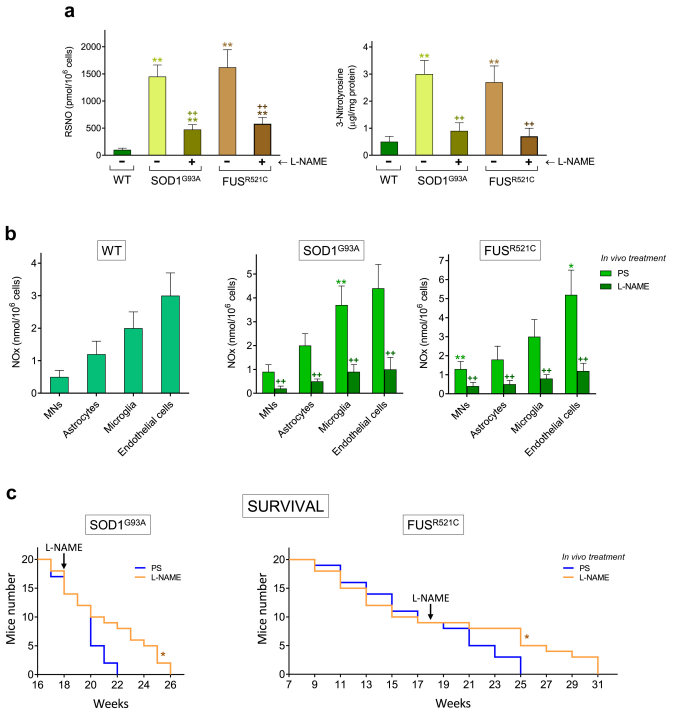 图 4. Treatment with L-NAME decreases NO generation and increases survival in ALS mice[10].