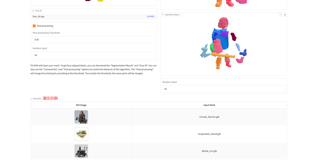 Random Seed:控制 P3-SAM 分割过程中涉及的随机性(例如采样点、颜色分配等)。