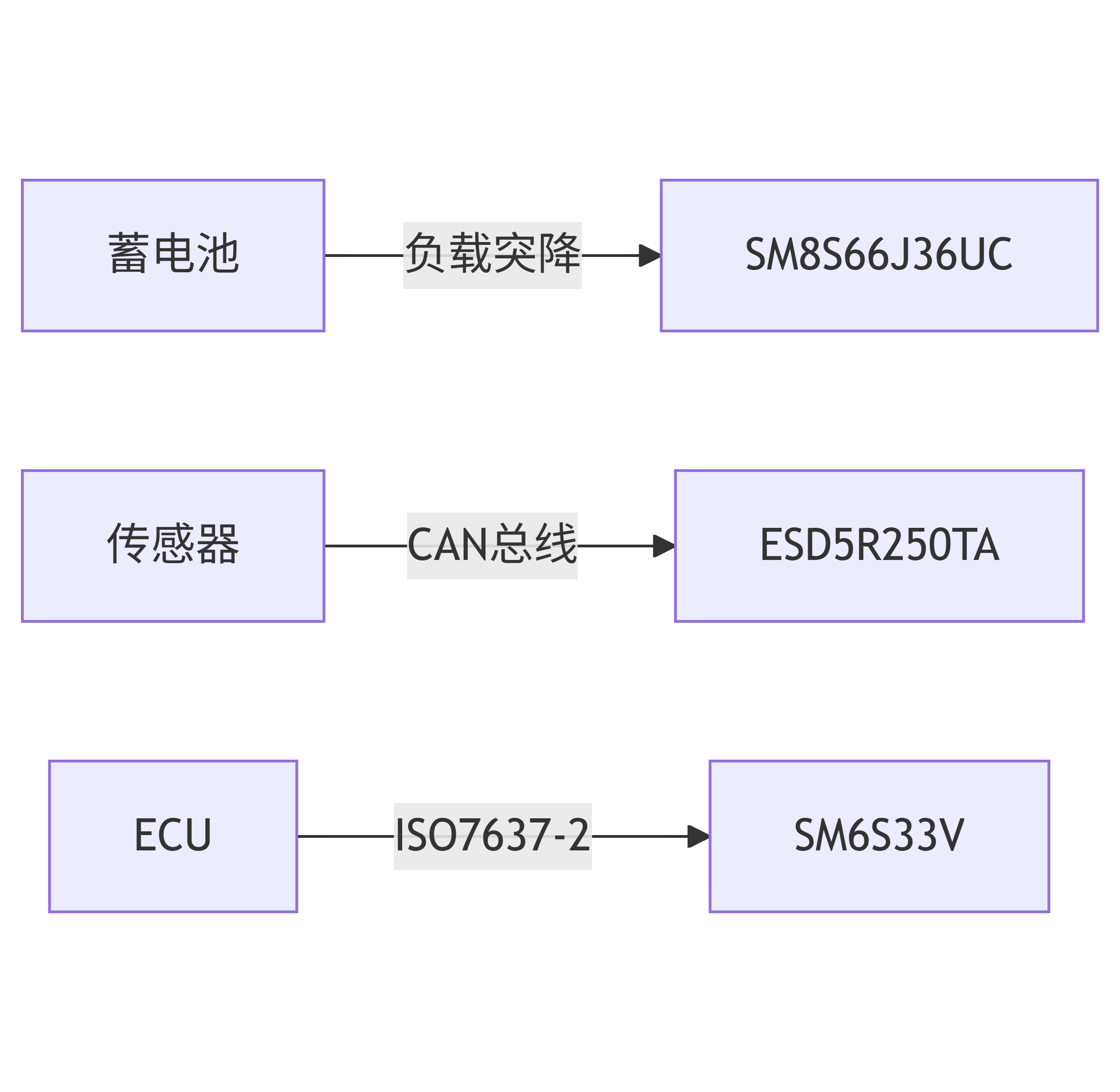 | 汽车蓄电池 | ASIM SM8S66J36UC | 6600W浪涌能力,AEC-Q101认证 |